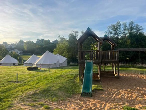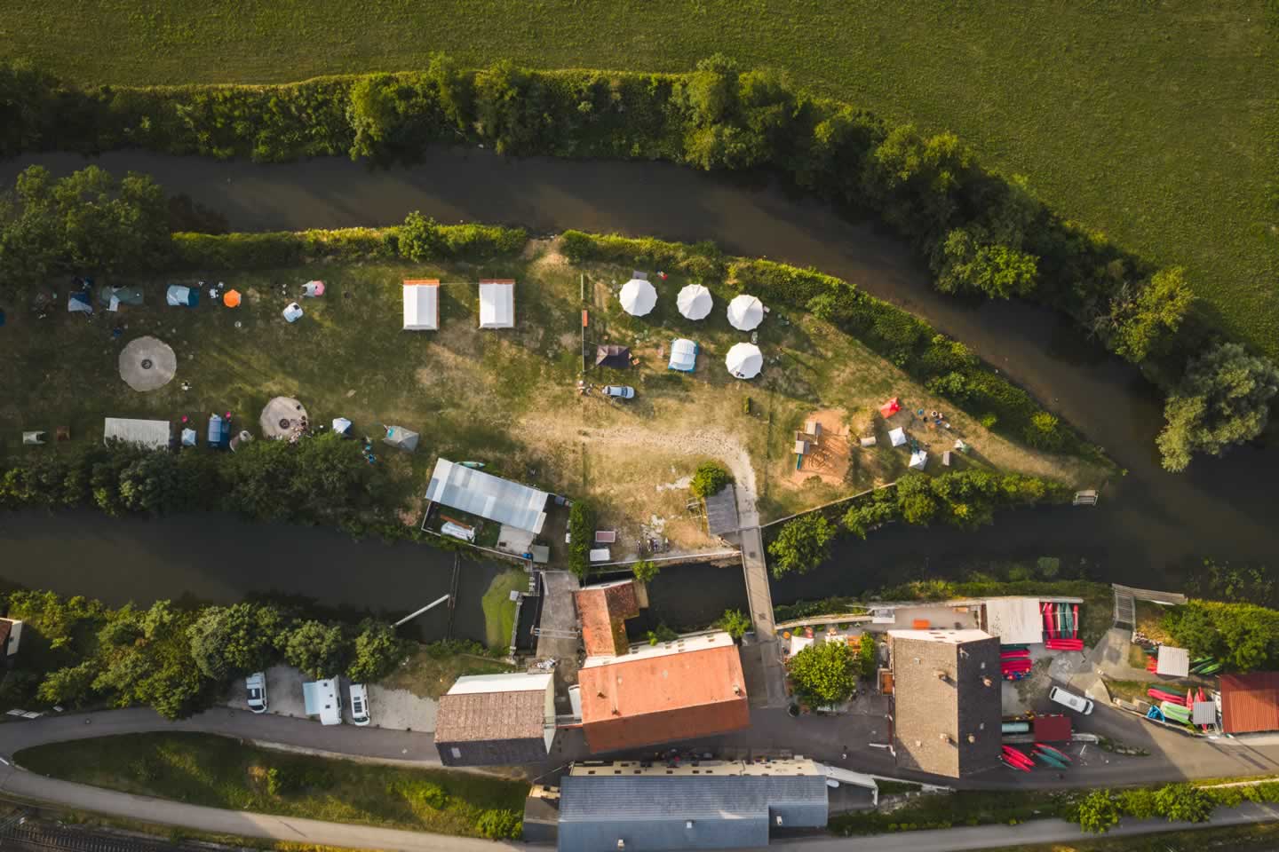 Das Herzstück unseres Familienurlaubs ist das gemütliche Insel-Camp. Hier könnt ihr in Hängematten entspannen und der Altmühl lauschen, während die Kinder die Umgebung entdecken. Auf der Insel gibt es einen Spielplatz mit Sandkasten, Schaukel, Rutsche und Klettergerüst – ideal für kleine Abenteurer. Die Insel ist über eine kleine Brücke mit dem Festland verbunden, wo sich der Biergarten „Zum Mühlenwirt“ sowie sanitäre Einrichtungen befinden. Der Gemeinschaftsbereich in der alten Mühle bietet Spiele, Bücher und wetterunabhängige Unterhaltung für die ganze Familie.