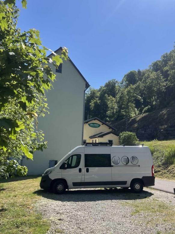 Stellplatz für eigenes Wohnmobil (bis 7m): die Stellplätz (inkl. Strom) befinden sich auf dem Festland, etwas abseits vom camp. direkt an der Altmühl