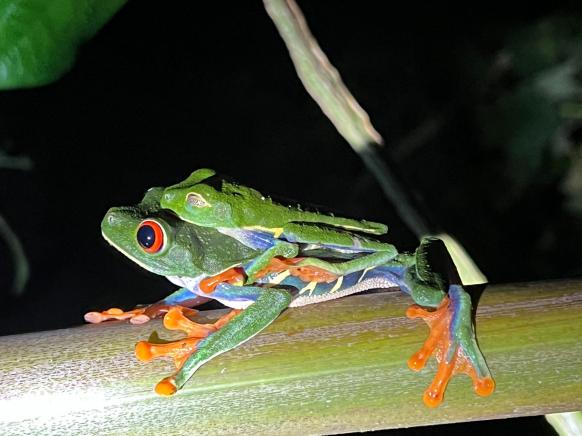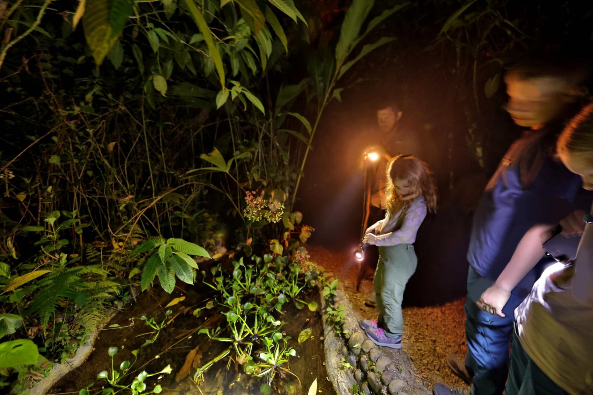 Am Abend genießen wir zuerst gemeinsam ein landestypisches Abendessen, dann brechen wir zu einem spannenden Nachtspaziergang auf, um die verschiedenen Frösche zu entdecken. Wir schleichen uns leise entlang der Wege und halten aufmerksam die Augen nach nachtaktiven Tieren offen. Wer wohl den ersten kleinen Blue Jeans Frosch entdeckt?