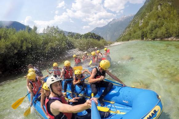 Tag 5: Mittwochs geht es immer nach Slowenien zu unseren Partnern von der Rafting-Schule in Bovec. Die Natur in und um Bovec ist wirklich gigantisch und erinnert uns fast an Neuseeland. Wir euch deswegen an, mit uns zum Raften, Canyoning, Ziplinen, Wandern, Baden (Achtung, die Soca ist temperaturmäßig auch im Sommer nichts für Weichlinge) oder einfach zum Genießen nach Slowenien zu fahren. Das Raften ist nicht im Reisepreis enthalten und muss vor Ort bar an den Reiseleiter gezahlt werden. Für die Gäste, die nicht Raften oder Canyoning machen wollen, gibt es eine schöne Wanderung entlang eines Wasserfalls.