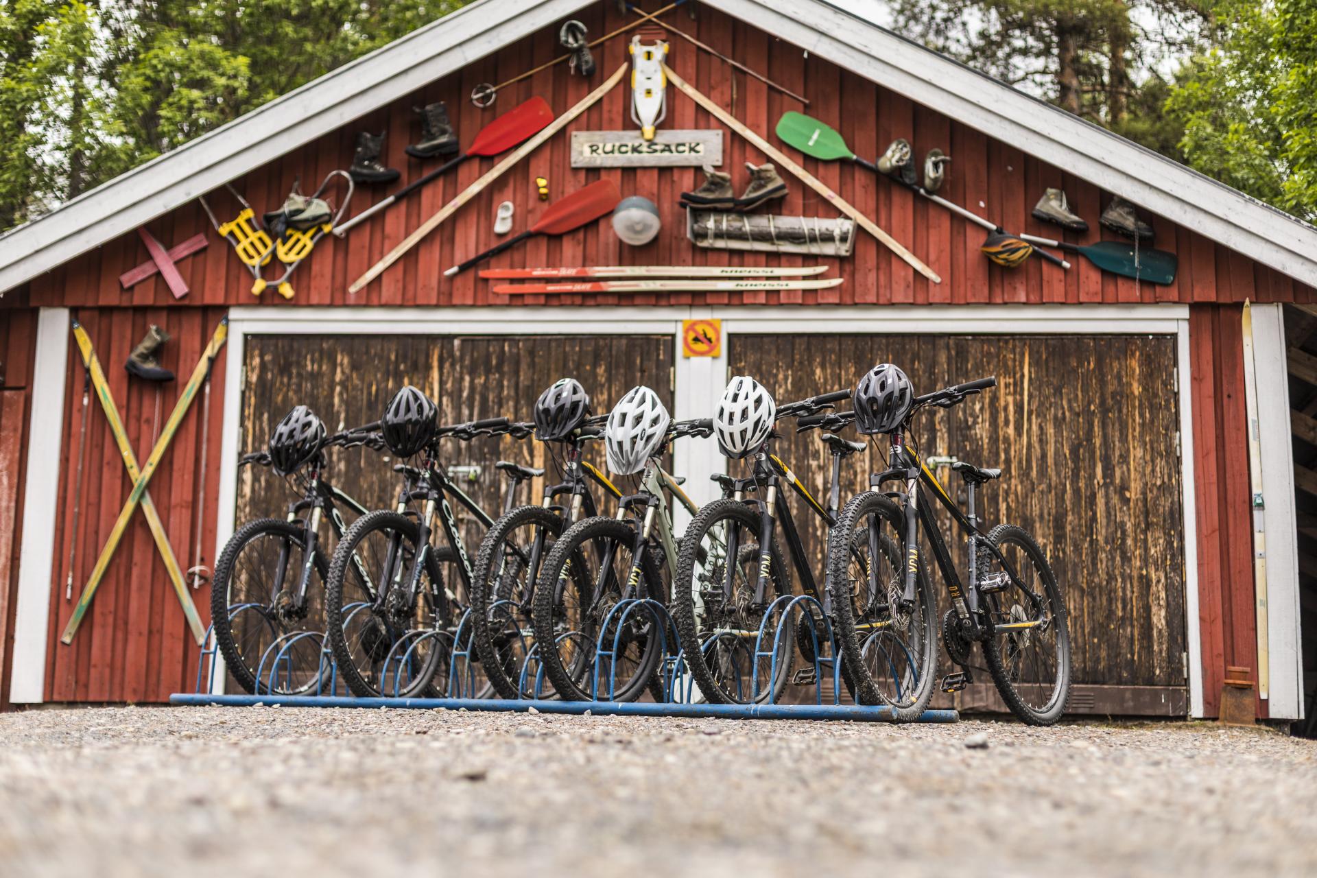 Für Fahrradtouren stehen solide All-Terrain und Mountain Bikes in verschiedenen Rahmengrößen zur Verfügung. Die Radtour zum Njupeskär, dem höchsten Wasserfall Schwedens im Fulufjäll Nationalpark ist ein Highlight, das man nicht versäumen sollte. Von der Hochebene oberhalb des Wasserfalls hat man fantastische Ausblicke über die weiten Täler und Wälder der Provinz. Wer es sportlicher möchte, erkundet mit dem Guide auf einer Mountain-Bike-Runde den Trail vorbei am See Burusjön und den Stromschnellen am Klingforsen.