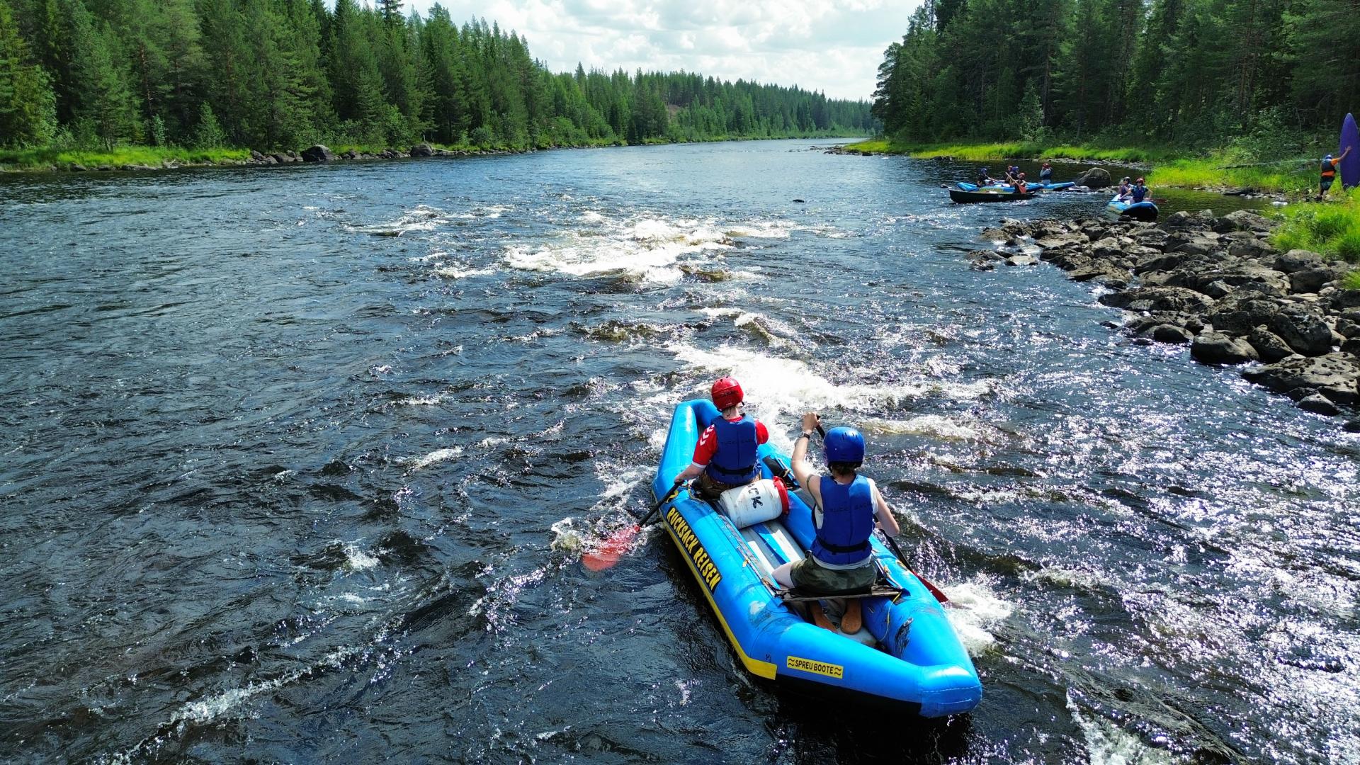 Während der Woche bieten wir eine Wildwasser-Tour im Schlauch-Canadier an und bezwingen die Stromschnellen auf dem Österdalälven. Ein bisschen Adrenalin erhöht bekanntlich den Funfaktor.