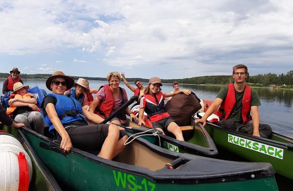 Etwas ruhiger geht es auf dem Fluss Storån zu. Mit den Rädern fahren wir zur Kanueinsatzstelle und folgen mit den Canadier-Booten dem Flusslauf, der sich mal ruhiger und mal schneller bis hinunter nach Idre windet. Wir üben die richtigen Paddelschläge, machen ein Picknick am Flussufer und wagen am Ende der Tour vielleicht auch mal den Sprung ins Wasser.