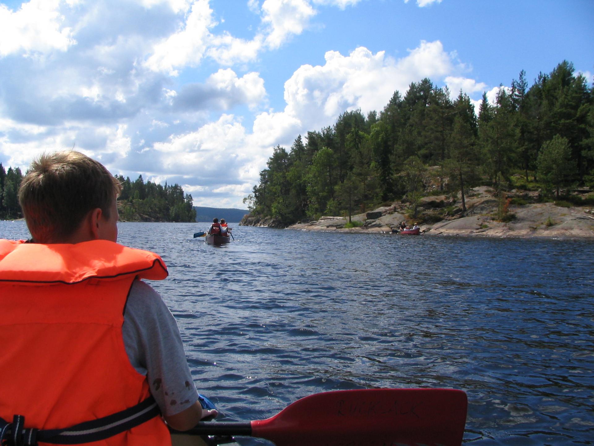 Die folgenden Tage fahren wir mit unseren Kanus von einem Lagerplatz zum nächsten, von Insel zu Insel. Je nach Wetter und Laune wird der Tag gestaltet. Paddeln, schwimmen, die Zeit draußen genießen. Die Etappenlängen sind auf die Kinder abgestimmt. Jeden Tag suchen wir uns eine andere Lagerstelle am See, um die Zelte aufzubauen. Am Freitag kehrt die Gruppe zurück zum Kanucamp Rök und verbringt dort die letzte Nacht im Zelt.