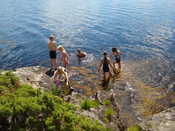 Wohl keiner unserer bislang erlebten Urlaube wird Fionn und mir so sehr im Gedächtnis bleiben, wie diese Kanutour. Paddeln, Schwimmen, Wald, Lagerfeuer, Schnitzen, Zelt, Stockbrot, Fische, Inseln, Felsen, Steine, Boot werden wahrscheinlich die Dinge sein, die meinem Sohn als Erstes einfallen werden, sollte er einmal dazu kommen, von seinen Ferien zu berichten. Viele kleine und große Abenteuer konnte er erleben und staunend durfte ich beobachten, wie selbstzufrieden, phantasievoll und wild unsere neunköpfige Tourenkinderbande die weitläufige und naturbelassene Seenlandschaft Schwedens eroberte. Jede von uns angesteuerte Insel, jeder Strand, jeder Wald oder Felsen brachte neue Möglichkeiten, die unsere Kinder tatendurstig für sich entdeckten.