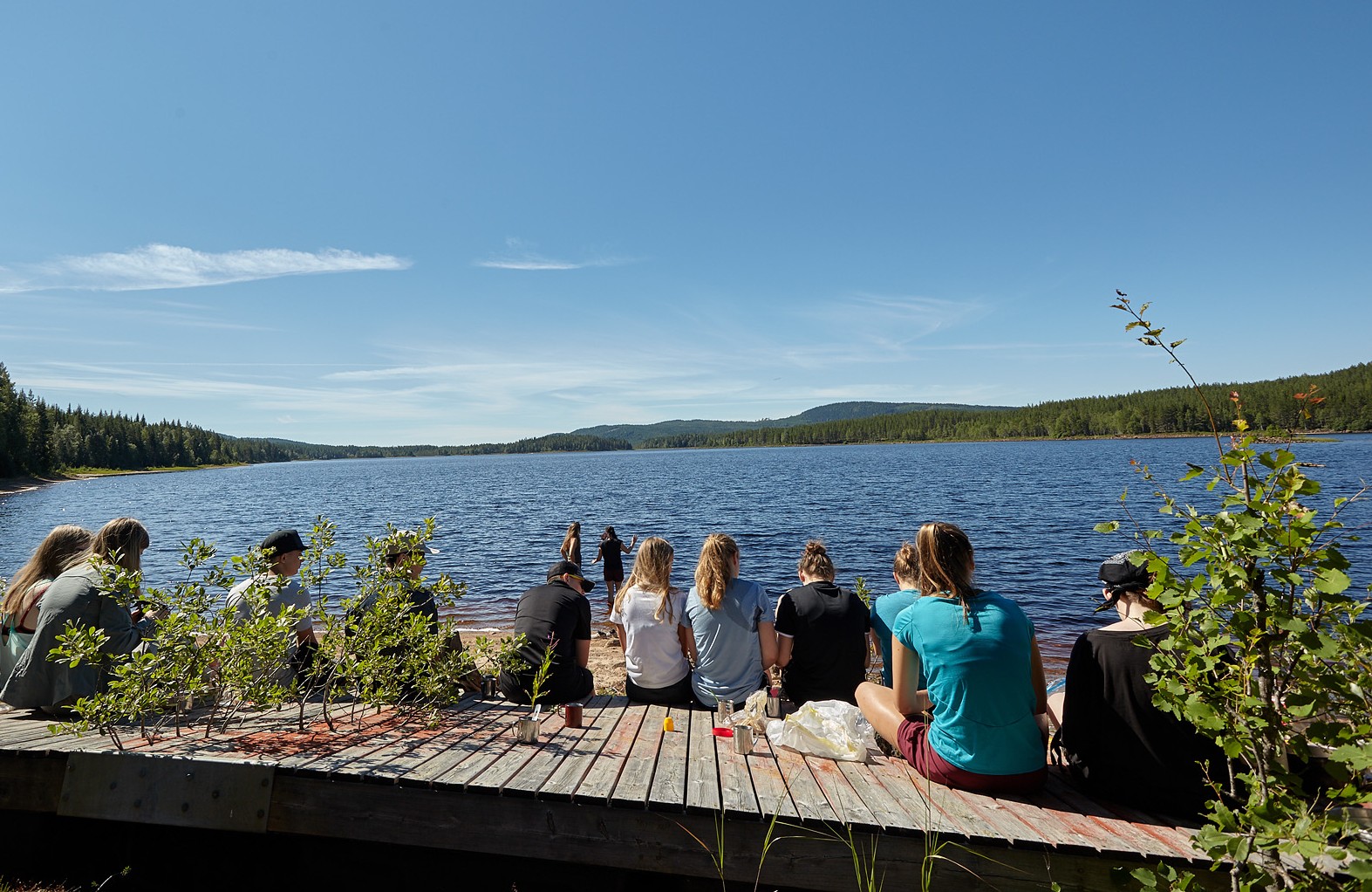 Das Haupthaus im Hüttendorf ist unser Treffpunkt. Hier befindet sich Rezeption und Küche, ein gemütlicher Aufenthaltsraum, wo auch gegessen wird, eine Leseecke und eine Terrasse mit mega Seeblick. Hier kann man super die die nordischen Sonnenuntergänge genießen. Abends am Lagerfeuer wird’s dann richtig gemütlich – der perfekte Abschluss nach einem Tag voller Action draußen in der Natur!