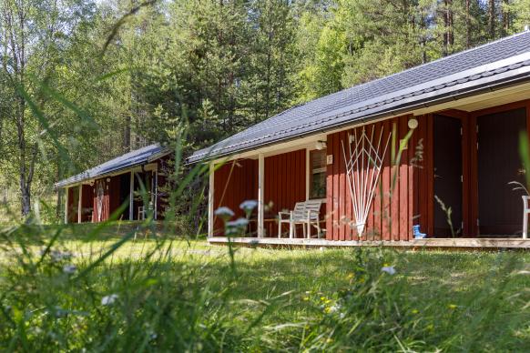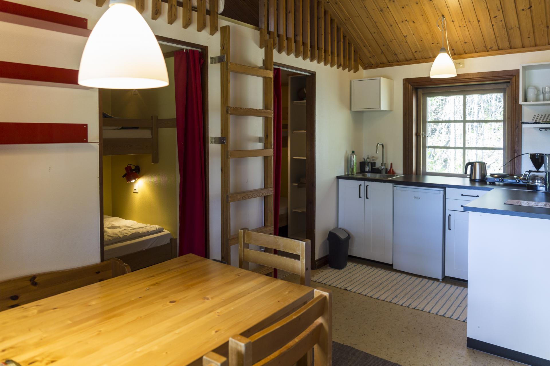 Wir belegen die Hütten mit bis zu 6 Personen immer gleichgeschlechtlich. Die zehn kleinen Schwedenhütten sind mit einer Pantry-Küche (Herd, Kühlschrank, Kaffeemaschine, Wasserkocher), WLAN, DU/WC und Sitzecke ausgestattet. Vor den Häusern kann man es sich auf der Veranda gemütlich machen. In zwei kleinen Schlafkammern steht jeweils ein Etagenbett. Wer möchte, kann auch im Alkoven über den Schlafräumen, wo zwei weitere Matratzen nebeneinander liegen, übernachten. Für die Reinigung der Hütten sorgt ihr am Ende der Woche selbst. Bettwäsche und Handtücher sind im Preis inbegriffen.