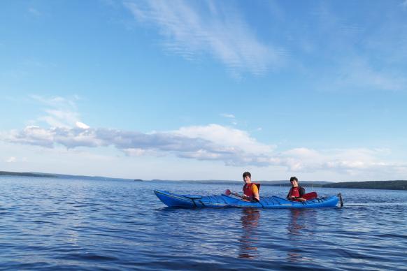 Auf dieser Tour verwenden wir die von den Jagdbooten der Inuit und Aleuten abgeleiteten Seekajaks. Seetüchtigkeit, höhere Geschwindigkeit sowie geringere Windanfälligkeit sind die Vorteile dieser Boote, die mit Doppelpaddeln gefahren werden. Zwei Jugendliche teilen sich ein Tandem-Kajak. Zusätzlich stehen einige Single-Boote zur Verfügung. Am ersten Tag geben die Guides eine Einweisung in das Kajakfahren und führen ein Sicherheitstraining durch.
