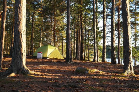 Während der Tour und im Kanu-Camp schlaft ihr in Trekkingzelten für zwei Personen. Wir belegen die Zelte gleichgeschlechtlich. Die Zelte bauen wir auf Lagerplätzen auf, die extra für Kanufahrer angelegt wurden. Meist gibt es dort eine Feuerstelle, einen kleinen Unterstand und eine Trockentoilette.