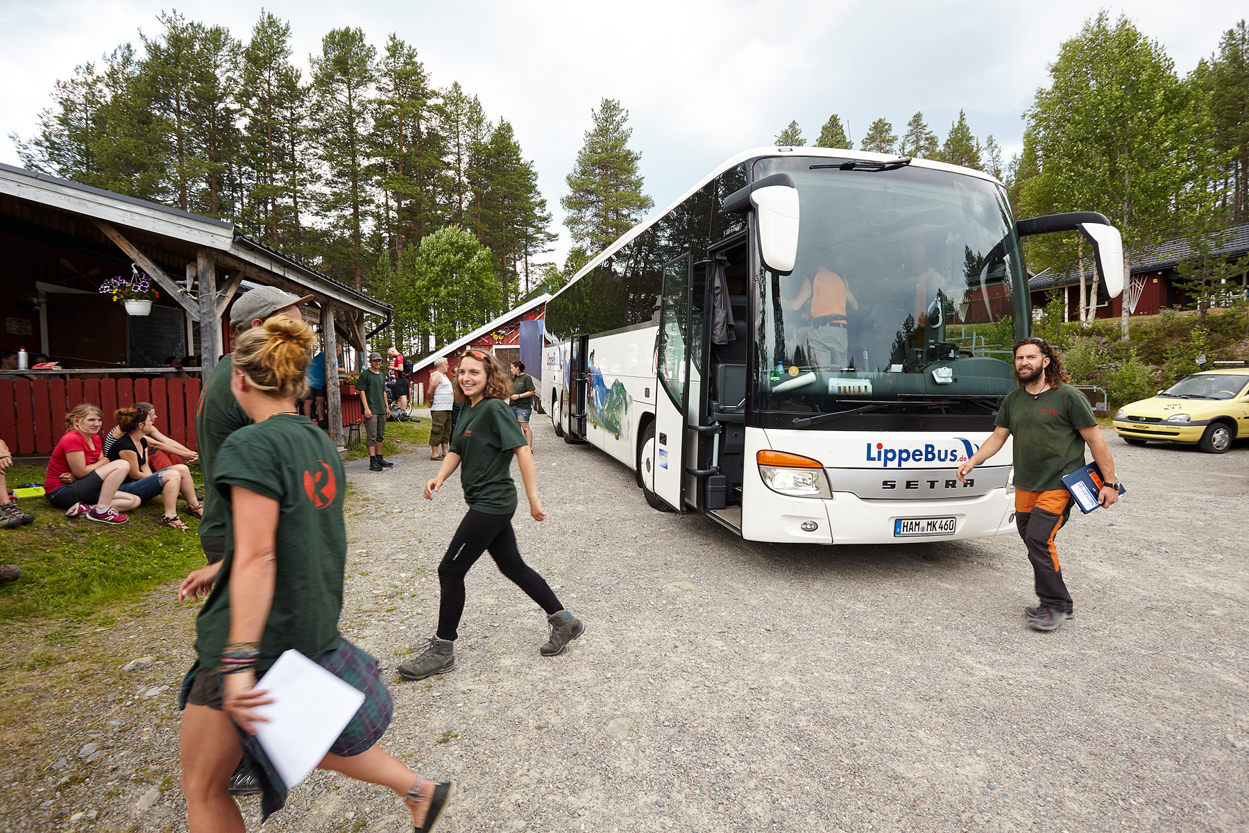 Abfahrten am Freitag ab Münster (15:00) und Hamburg (19:00). Kurz nach 21:00 Uhr nehmen wir schon die Fähre von Puttgarden nach Rödby (Dänemark). Die Überfahrt dauert ca. 45 Minuten. Bis zum Hafen in Helsingör fährt der Bus wieder nur ca. zwei Stunden. Dort nehmen wir die Fähre nach Helsingborg (ca. 20 Minuten). Wir fahren durch die Nacht, schlafen im Bus und kommen am Samstagnachmittag im Basiscamp in Idre an.