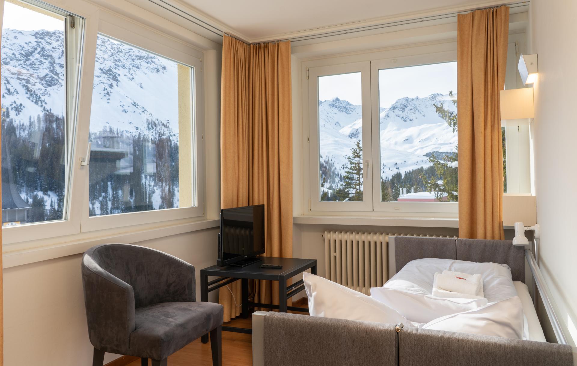 Unser Sportclub thront in wunderbarer Lage, leicht oberhalb des Dorfzentrums von Arosa. Das schöne, traditionelle Hotel aus den 1930er Jahren wurde zu einem modernen 3*-Hotel ausgebaut. Die 50 Zimmer verteilen sich über 4 Etagen und bieten alles, um sich rundum wohlzufühlen. Das großzügige Restaurant, die kleine Bar und die weitläufige Sauna mit Außenterrasse im obersten Stock bieten einen tollen Blick auf die Berge. Alle Zimmer sind gemütlich und hell und verfügen überwiegend über einen Balkon.
