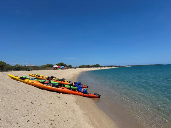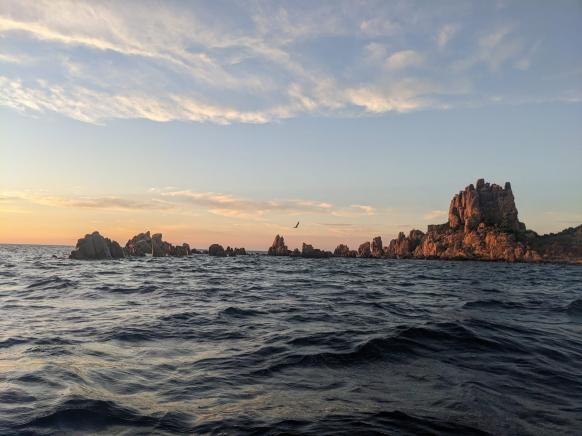 Am dritten Tag geht es nun endlich auf Tour. Wir packen unsere Sachen, die wir in den nächsten Tagen benötigen und starten in Richtung Süden. Zunächst paddeln wir vorbei an endlose Sandstränden, die immer wieder zu Badestopps einladen. Auch der östlichsten Zipfel Sardiniens, das Capo Comino liegt auf unserer Route, deren Tagesetappen meist zwischen 20-25 km lang sind.