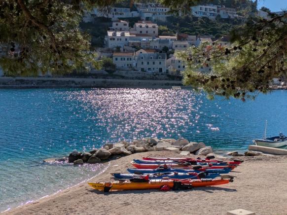 Auf der einwöchigen Seekajak-Standorttour mit Standort in Bol, erkunden wir die Küste der Insel Brač, können das Kloster Blaca besuchen oder je nach Wetterbedingungen auch Touren an der Nordküste z.B. von Pučišća über Postira nach Sutivan machen. Die dalmatinische Adriaküste in Kroatien begeistert in jedem Fall mit kristallklarem Wasser und angenehmen Temperaturen – perfekt für eine Paddeltour im Seekajak. Außerhalb der Hauptsaison kannst du die ruhige Küste mit ihren versteckten kleinen Stränden fast für dich allein entdecken.