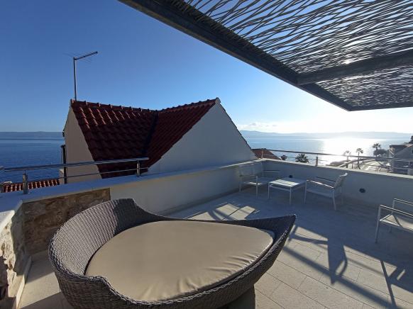 Während der Paddelreise in Dalmatien wohnen wir in einer Villa mit privatem Pool, Sauna, Whirlpool, einem Aufenthaltsraum mit Küche und insgesamt fünf Zimmern, jedes mit Bad und WC.