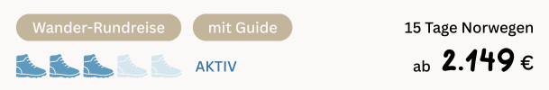 Auch in Norwegen sind wir aktiv unterwegs: Gewaltige Gletscher und beeindruckende Fjordlandschaften begleiten uns auf unserer Rundreise “i hytta” und auf der Seekkajaktour durch den Hardangerfjord. In Heidal am Fuße des Rondane-Gebirges erleben Eltern zusammen mit ihren Kindern Outdoor-Action pur.