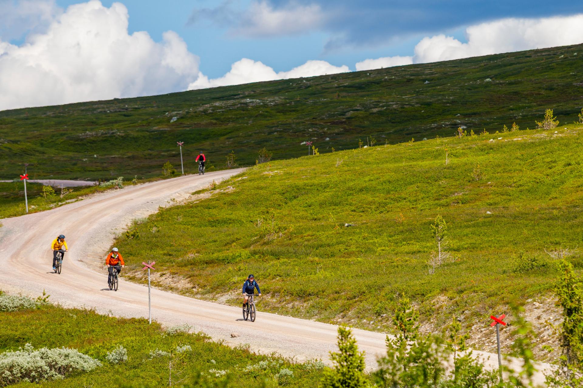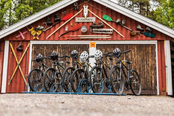 Für Fahrradtouren stehen solide All-Terrain und Mountain Bikes in verschiedenen Rahmengrößen zur Verfügung. Die Radtour zum Njupeskär, dem höchsten Wasserfall Schwedens im Fulufjäll Nationalpark ist ein Highlight, das man nicht versäumen sollte. Von der Hochebene oberhalb des Wasserfalls hat man fantastische Ausblicke über die weiten Täler und Wälder der Provinz. Wer es sportlicher möchte, erkundet mit dem Guide auf einer Mountain-Bike-Runde den Trail vorbei am See Burusjön und den Stromschnellen am Klingforsen.