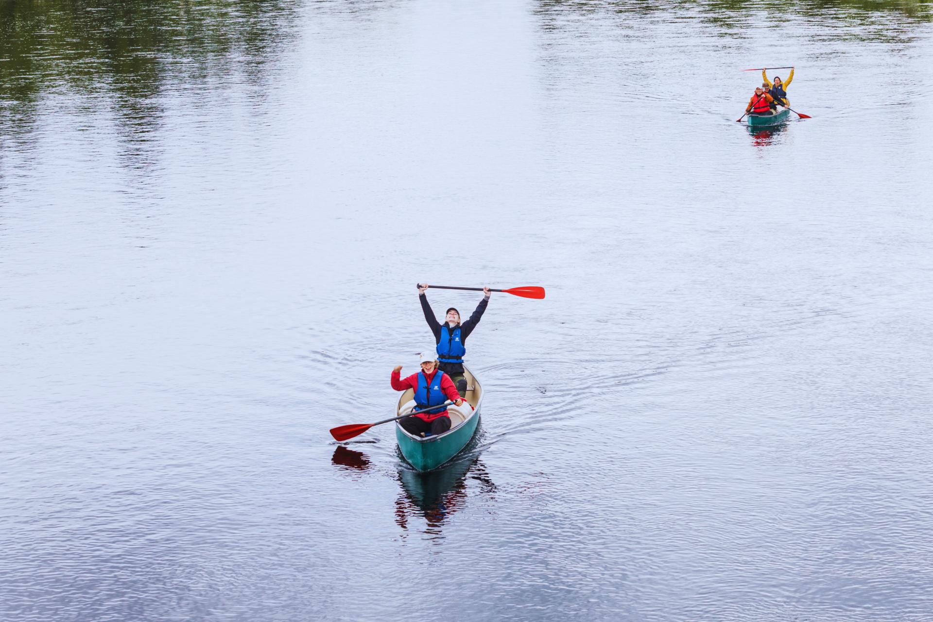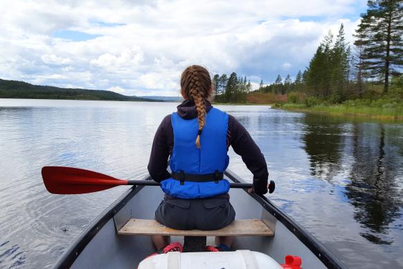 Etwas ruhiger geht es auf dem Fluss Storån zu. Mit den Rädern fahren wir zur Kanueinsatzstelle und folgen mit den Canadier-Booten dem Flusslauf, der sich mal ruhiger und mal schneller bis hinunter nach Idre windet. Wir üben die richtigen Paddelschläge, machen ein Picknick am Flussufer und wagen am Ende der Tour vielleicht auch mal den Sprung ins Wasser.