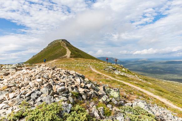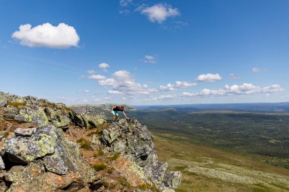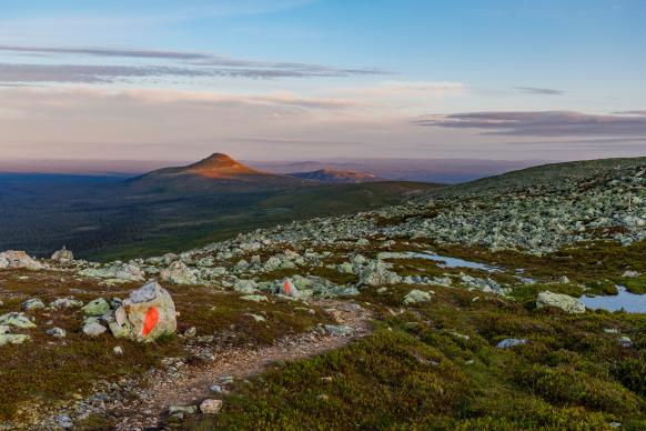 Auf dem Anstieg zum Gipfel des Städjan, dem markantesten Berg der Region, geht es durch märchenhafte Wälder und schmale Pfade schnell über die Baumgrenze hinaus. Oben auf dem Berg angekommen, hat man einen atemberaubenden Blick über das Fjäll und das Tal des Österdalälven bis nach Norwegen.