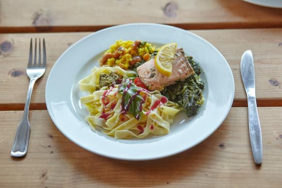 Am Abend servieren wir eine gute Hausmannskost mit Vor-, Haut- und Nachspeise. Vom Frühstücksbuffet kann sich jeder ein Lunchpaket zusammenstellen. Wenn du vegetarisch, vegan oder laktosefrei essen möchtest, sag uns das einfach direkt bei der Buchung. Bei Lebensmittelallergien oder Unverträglichkeiten schauen wir, was möglich ist. Bitte vor der Buchung mit uns absprechen.