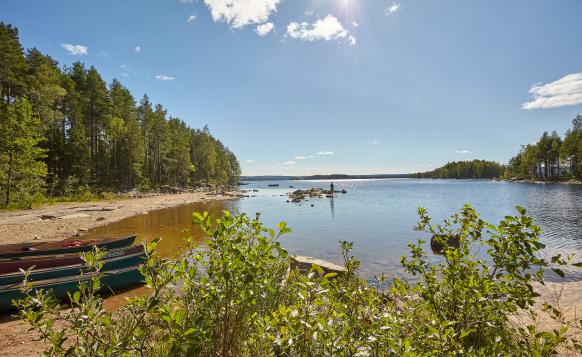 Dienstag: Ein Highlight der Woche. Der Kleinbus bringt uns samt Kanus in das Glaskogen Naturreservat. Am See Stora Gla, einem der schönsten Gewässer der Region, teilt sich die Gruppe in zwei Kanu-Teams. Mit unseren Canadier-Booten gleiten wir zwischen kleinen Schären-Inseln und Buchten über den glitzernden, malerischen See, Picknick und Badespaß inklusive.