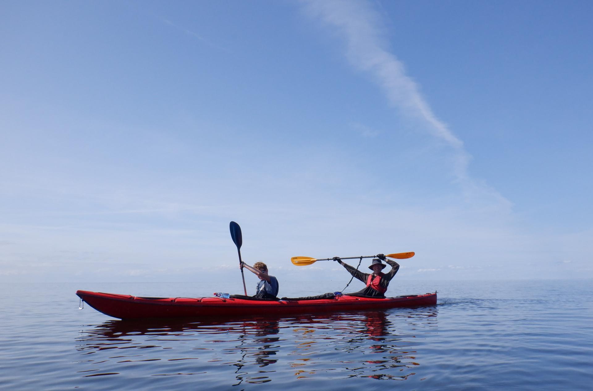 Auf dieser Tour verwenden wir die von den Jagdbooten der Inuit und Aleuten abgeleiteten Seekajaks. Seetüchtigkeit, höhere Geschwindigkeit sowie geringere Windanfälligkeit sind die Vorteile dieser Boote, die mit Doppelpaddeln gefahren werden. Zwei Personen teilen sich ein Tandem-Kajak. Zusätzlich stehen einige Single-Boote zur Verfügung. Am ersten Tag geben die Guides eine Einweisung in das Kajakfahren und führen ein Sicherheitstraining durch.