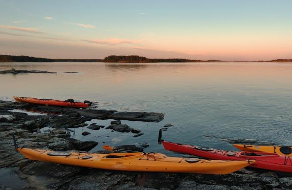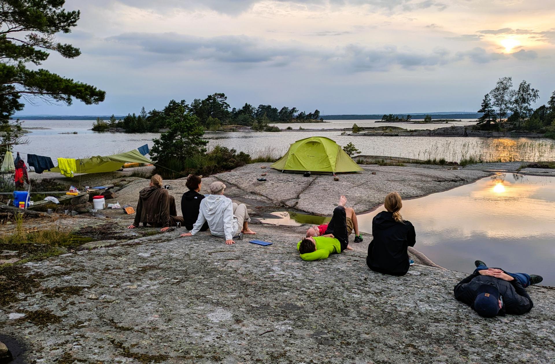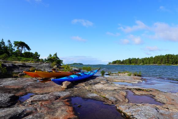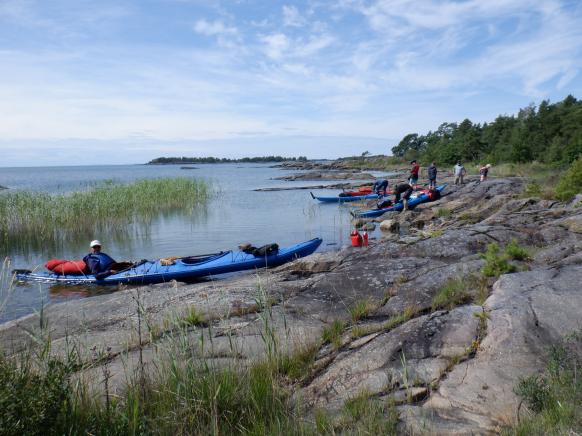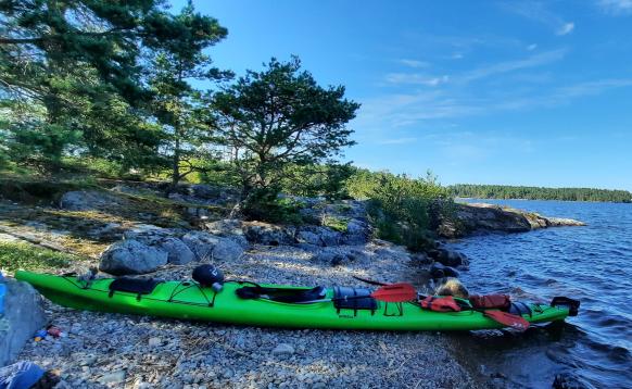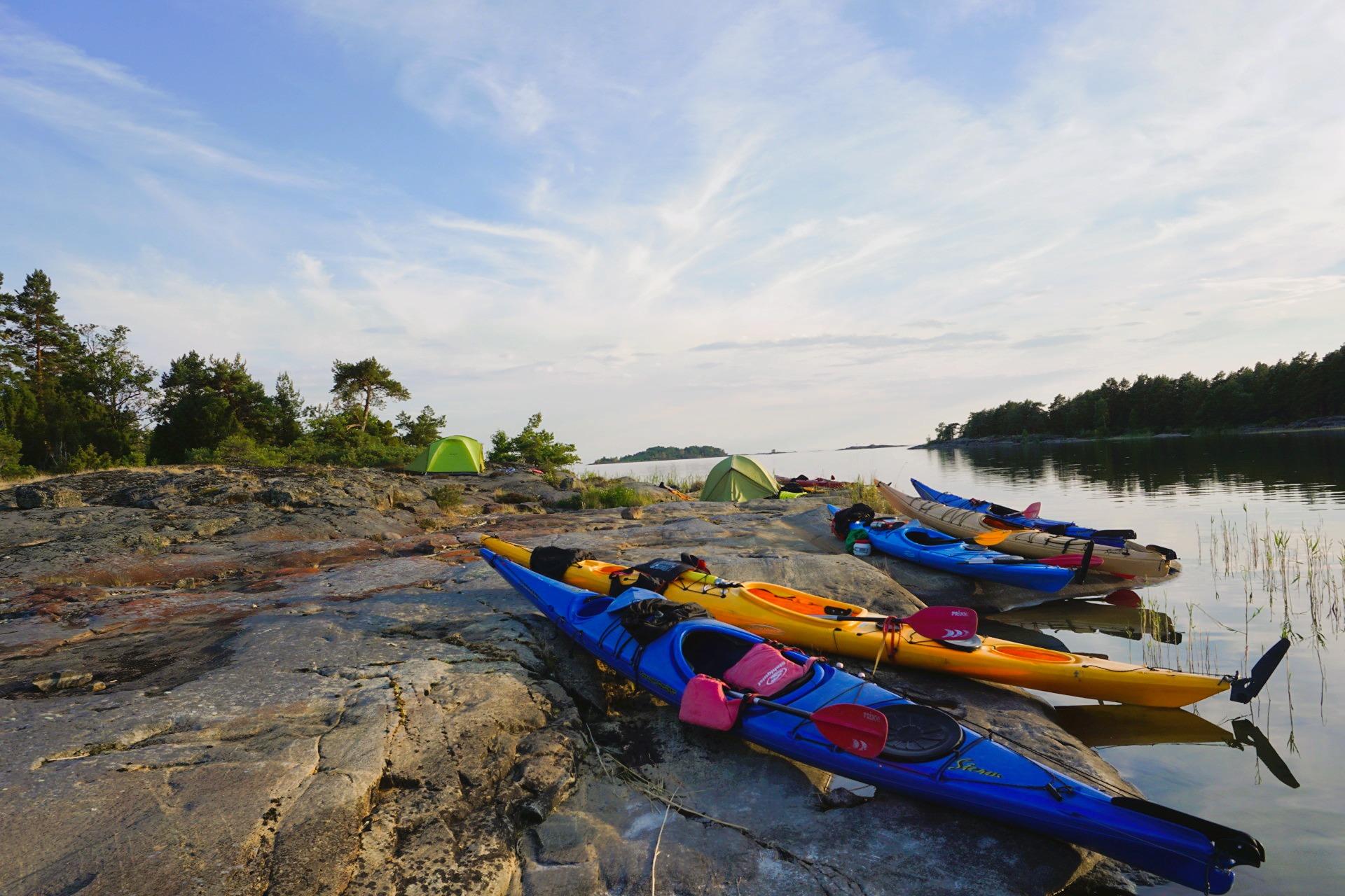 Eine Woche lang sind wir mit Kajak und Zelt unterwegs. Am ersten Tag üben wir auf dem See Glafsfjorden in der Nähe von unserem Basecamp in Stömne. Wir machen uns mit den Booten vertraut, trainieren die Paddeltechnik, das Packen der Kajaks und absolvieren ein Sicherheitstraining. Am nächsten Tag erfolgt ein Transfer nach Säffle zum Ufer des Vänern. Von jetzt an ist „Inselspringen“ angesagt. Etwa 22.000 große, kleine und kleinste Inseln und Schären (kahle Felseninseln) prägen das Binnenmeer.