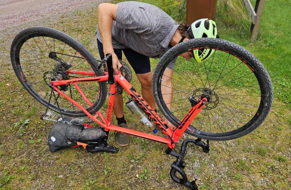 Alle Teilnehmer der Gravel-Woche bringen ihr eigenes Bike und die entsprechende Ausrüstung mit. Eine gute Grundfitness und ein bisschen Durchhaltevermögen sollten auf jeden Fall vorhanden sein. Wir sind in hügeligem Gelände unterwegs. Kurze Anstiege wechseln sich mit immer wiederkehren mal mehr mal weniger rasanten Abfahrten ab. Hin und wieder verlassen wir auch die Schotterpiste, fahren ein paar Kilometer auf Asphalt oder folgen gut befahrbaren Wanderwegen und kleinen Single Trails quer durch den Wald. "Der Track ist der Track", dem wir unaufhaltsam folgen, auch wenn sich uns Hindernisse in den Weg stellen, die es zu überwinden gilt.