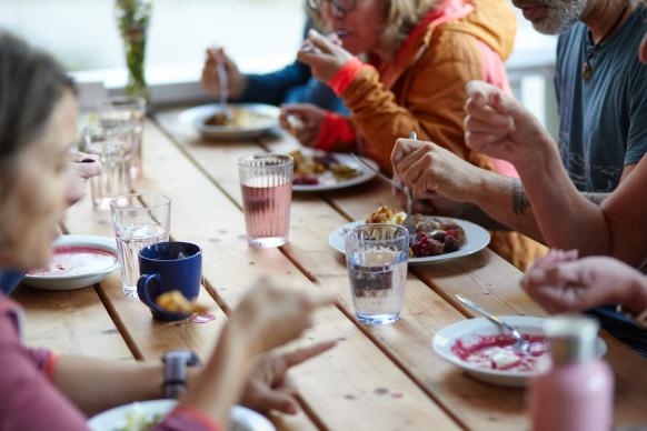Am Abend servieren wir eine gute Hausmannskost mit Vor-, Haut- und Nachspeise. Vom Frühstücksbuffet kann sich jeder ein Lunchpaket für den Tag zusammenstellen. Wenn du vegetarisch, vegan oder laktosefrei essen möchtest, sag uns das einfach direkt bei der Buchung. Bei Lebensmittelallergien oder Unverträglichkeiten schauen wir, was möglich ist. Bitte vor der Buchung mit uns absprechen.