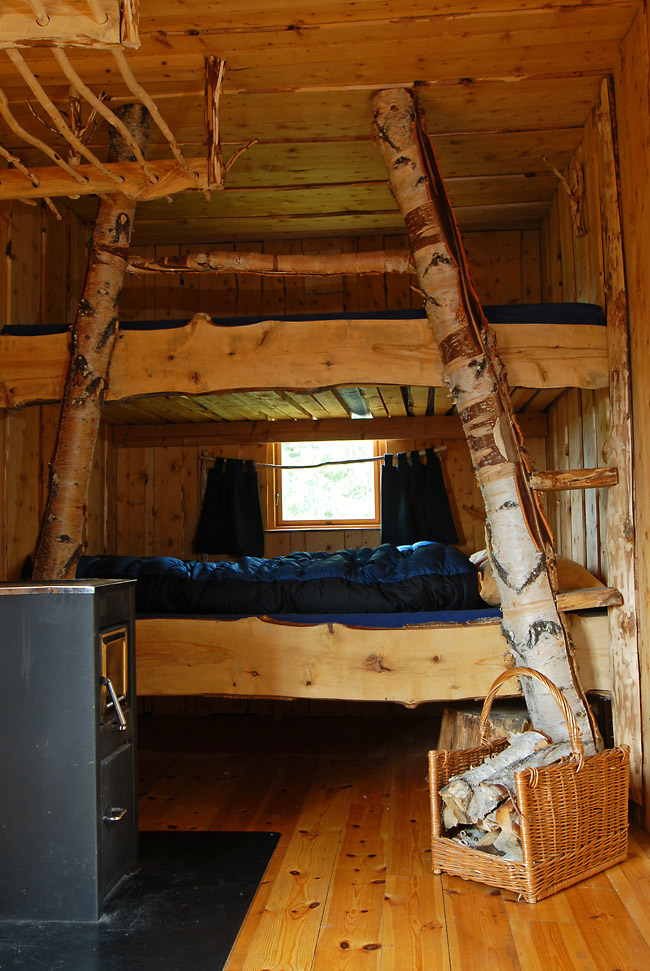 Dieses Blockhaus ist im Stil der alten Holzfällerhütten im Jahre 1999 neu eingerichtet worden und hat Platz für bis zu 12 Personen. Oft wird die Holzfällerhütte als Mehrbettzimmer (bis max. ca. 6 Erwachsene) vermietet. Hier schläft man in 150cm breiten Stockbetten.